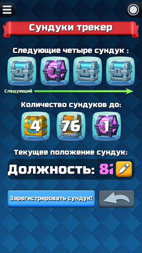 3) Это приложение расскажет вам, сколько еще сундуки до следующего Золотой сундук, Огромный сундук и Магический сундук.