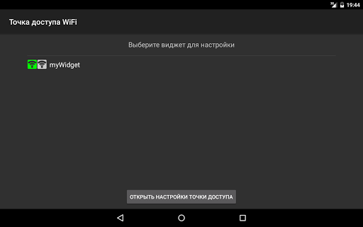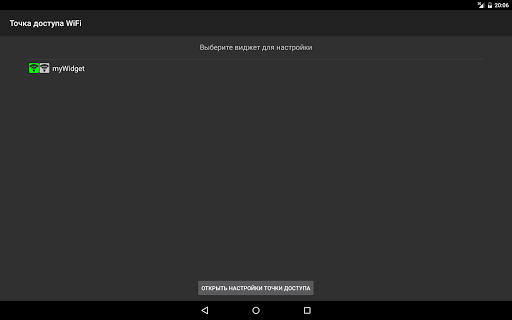 - пролистайте список установленных виджетов и выберите Точка доступа WiFi, разместите виджет на домашнем экране;