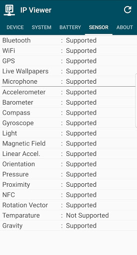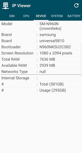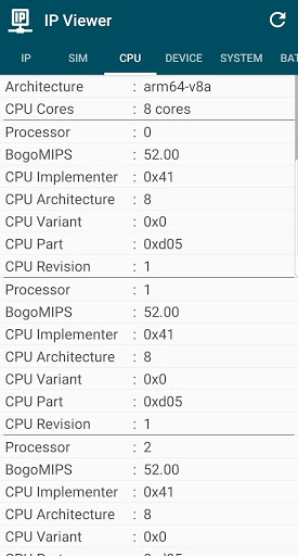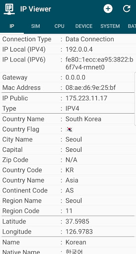 IP-Viewer show information about your IP, Phone, Sim, CPU, system, device, batery, and sensor and much more detailed information.