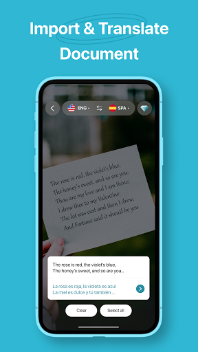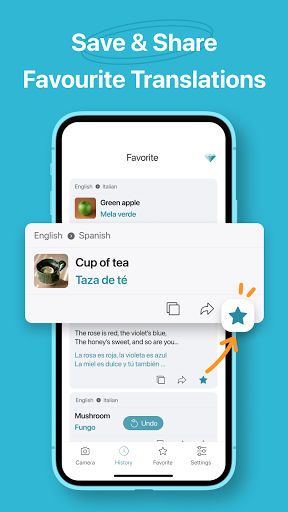 сканирование и перевод текстов, документов и объектов никогда не было проще. Просто сделайте фото, и наш мощный сервис AI автоматически обнаруживает текст. Камера может просматривать текст и большие документы на разных языках и переводить их на другие языки. С переведением CAM ON, укажите камеру приложения на любой текст на фотографии или документы и нажмите кнопку, чтобы автоматически перевести на целевой язык.
