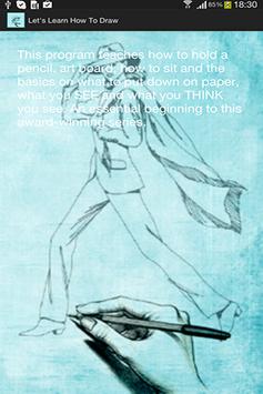 This program teaches how to hold a pencil, art board, how to sit and the basics on what to put down on paper, what you SEE and what you THINK you see.