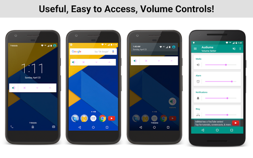 You can control the Media, Alarm, Notification, Ring, Call Voice, and System audio streams from either inside the app or via widget.