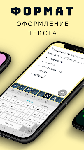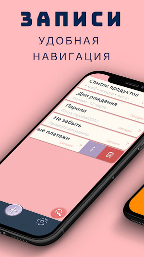 Автоматическое сохранение написанных заметок, при внезапном выключении телефона, звонке или просто закрытии приложения не потеряет Ваши записи.