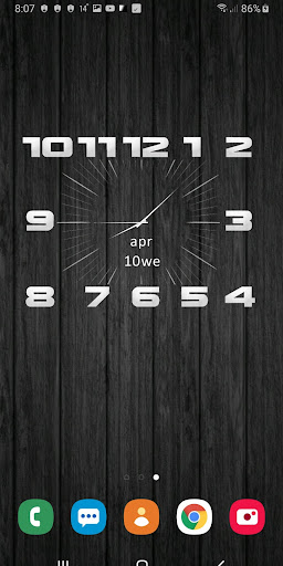 Встроенные циферблаты: Белый (По умолчанию), Черный, Римские, Римские прозрачные, Цифровой. Фоны: 5 разных изображений. Изменение размера часов. Изменение позиции часов.