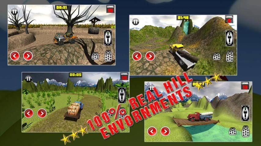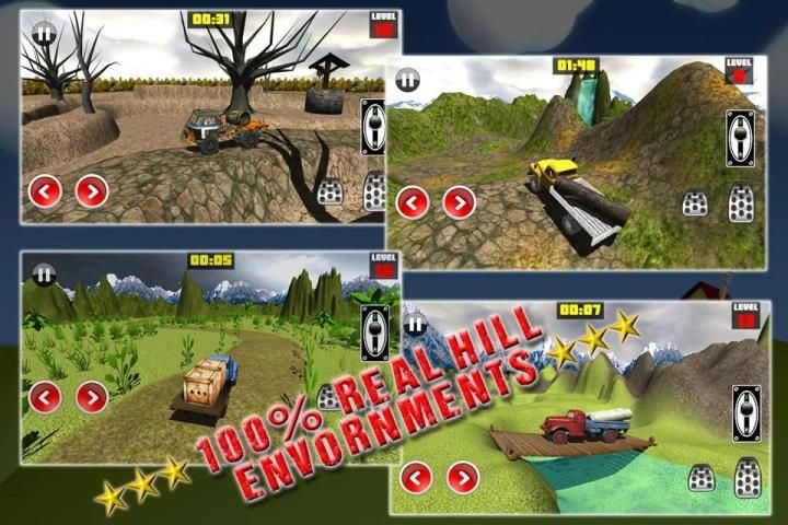 Контролируйте свой грузовик, чтобы подняться в горы с самой реалистичной управления, чтобы противостоять вызовам уникальных гору и под гору средах.