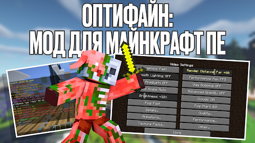Minecraft Mods Optifine существенно помогает привнести в Pocket Edition мир🌏 различных дополнительных функций и play настроек в меню Оптифайн: Мод для Майнкрафт ПЕ, что бы наша любимая realistic блочная игра подходила под все параметры всех устройств📱 наших геймеров.