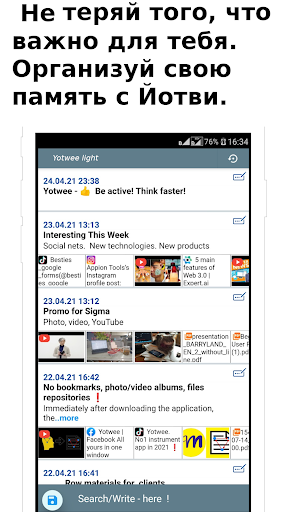 Организуйте свою память в одном умном окне по датам, темам, целям.