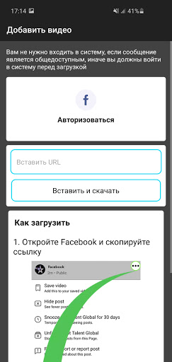- Вы также добавляете видео, используя Video Downloader для Facebook без входа в систему, Video Downloader для Instagram или загружая видео из Twitter, Tiktok.