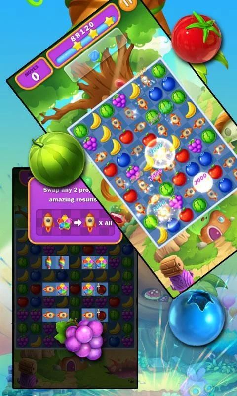 Нажмите на двух или более красочных фруктов разорвет их, создать высокий балл в этой головоломки приключение!