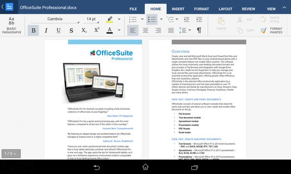 OfficeSuite lets you easily view, edit, and create Word, Excel, and PowerPoint documents, convert to PDF, and manage your files all with the most feature-rich mobile office solution available for Android smartphones and tablets.