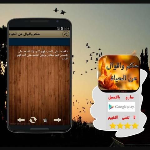 9Apps يقدم تحميل كمية هائلة من التطبيقات العربية 10,000+ مستحدمين يحملون حكم واقوال عن الحياة بدون نت احدث الاصدار مجانا كل أسبوع في انه من تطبيقات تعجبني للغاية..9Apps هذه التطبيق الحلوووه تصدر في 2015-08-12 هيا بنا وإلى 9Apps لمعرفة اكثر المعلومات..