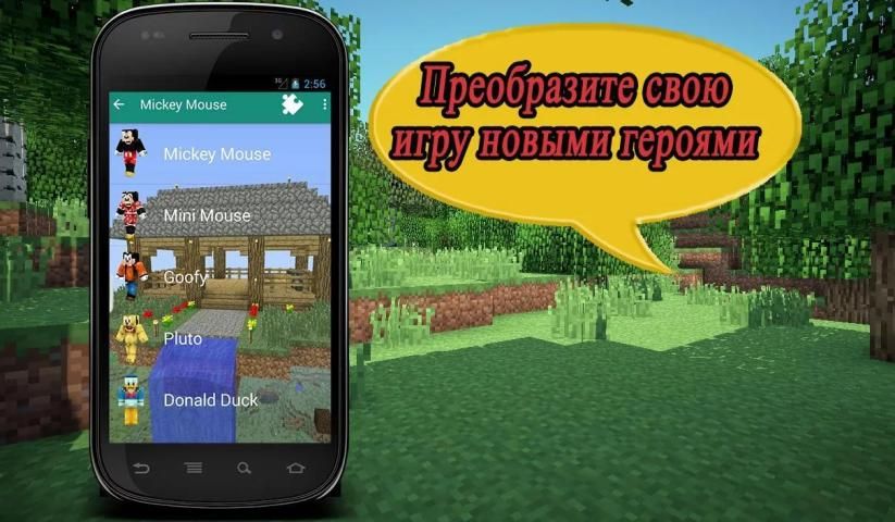 Разнообразные персонажи мультфильмов и просто крутые образы персонажей MC ты найдёшь в этом приложении!