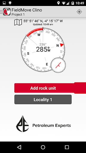 FieldMove Clino-это цифровой компас-клинометр для сбора данных на вашем телефоне Android, предназначенной для простоты в поле, и оптимизированный для использования местоположения и ориентации GPS устройства.Это геологическое приложение позволит вам использовать свой телефон в качестве традиционного ручного компасса, а также цифровой компас-клиниметр для измерения и захвата ориентации плоских и линейных функций в полевых условиях.Fieldmove Clino позволяет быстро пройти большие объемы измерений, что делает ваш набор данных гораздо более статистически действительным.Вы также можете запечатлеть и хранить цифровые фотографии и текстовые примечания.Данные могут быть экспортированы как файлы перемещения, CSV или KMZ, а затем импортируются непосредственно в FieldMove ™, Move ™ или другие приложения, такие как Google Earth.br>- отображать геологические данные на равной области или равный угол стереонет , позволяя выполнить некоторый базовый статистический анализ в поле