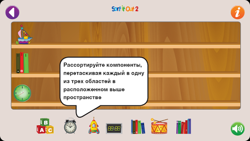 Уборка в детской комнате еще никогда не была такой интересной. Научите своего ребенка наводить порядок и расставлять вещи на места с помощью этой увлекательной программы. Данная программа способствует развитию навыков концептуализации, зрительного восприятия и тонкой моторики. При участии родителей она также позволяет развивать навыки речи.