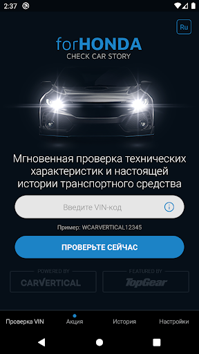 Скачайте приложение Check Car History For Honda прямо сейчас!