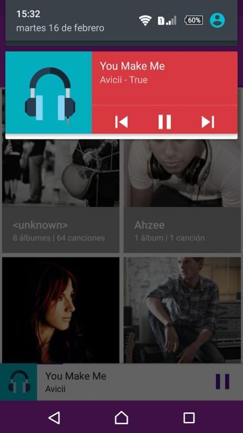 - Изменения песню из панели уведомлений.