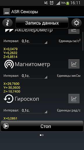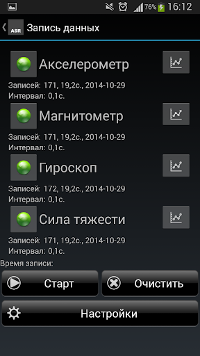 ASR Сенсоры отображает показания доступных датчиков вашего сматрфона или планшета, строит графики и позволяет сохранять показания для дальнейшего использования. Использование Google Maps API позволяет отображать GPS данные на карте (зависит от версии OpenGL ES на вашем устройстве).