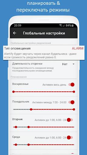 Может воспроизводить звуковой сигнал, даже если громкость уведомлений равна 0 (выключено по умолчанию).