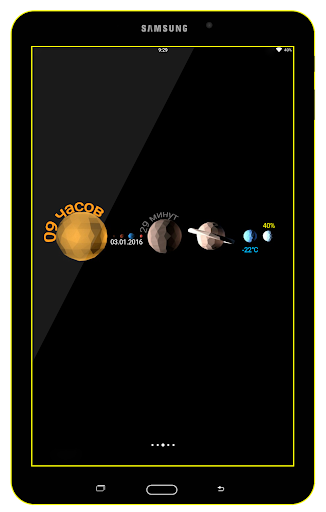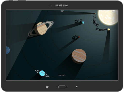Вы можете располагать элементы виджета (часы, минуты, дата, погода, заряд батареи) в любом месте (в пределах виджета) относительно обоев рабочего стола.