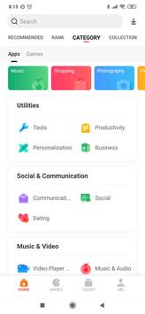 Руководство по приложению New Get Apps - это очень визуальное приложение, которое поддерживает внимание пользователя, чтобы помочь им найти приложение, которое он или она может быть заинтересован. Приложения MI Guide Главная страница показывает различные вкладки и меню, которые помогут вам быстро отфильтровать поиск, ищете приложения для приложений, игр, коллекции, топ-загрузки ...