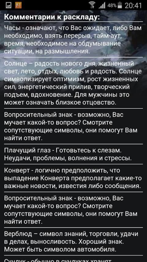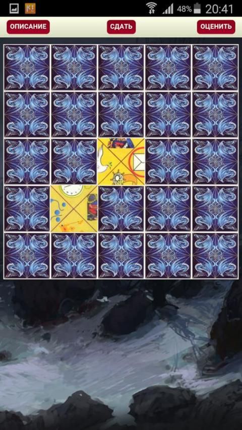 Этот необычный способ гадания, его называют Старинный пасьянс или Индийский пасьянс гадание. Это гадание раскладывали еще наши прабабушки и прадедушки. Пасьянс гадание отражает народные мудрости, символы его близки и понятны каждому человеку и идут из жизненных ситуаций. Пасьянс состоит из 25 карточек. Карточки раскладываются по пять карт в каждый ряд, получается, пять рядов по пять карт. По краям карточек расположены половинки различных символов. Иногда эти половинки совпадают, и образуется целый символ, трактовка совпавших символов и лежит в основе пасьянса гадания. Перед тем как разложить пасьянс, нужно полностью сосредоточиться на интересующей проблемой. При серьезном подходе, гадание подскажет вам, как нужно поступать, чтобы избежать неприятных последствий в той или иной ситуации.