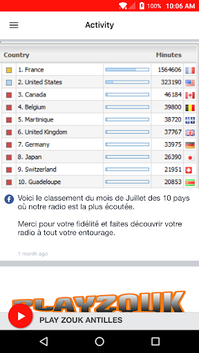 100% Зоук любви хит 24/7 от Парижа. Это приложение является официальным, эксклюзивным приложением для игры ZOUK Antilles по соглашению между воспроизводством Zouk Antilles и Nobex Technologies.