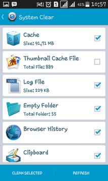 4. System Clean (Cache, Thumbnail Cache, while File, Log File, Empty Folder, Empty File, Browser History, Clipboard, Market History, Gmail History, Google Earth History, Google Map History)