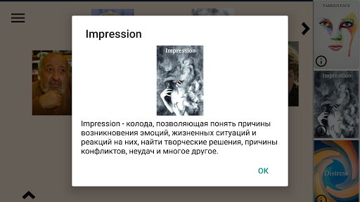 Метафорические Ассоциативные Карты – приложение, разработанное при поддержке Константина Довлатова, позволяет легко и удобно работать с МАК на вашем андройд-устройстве, как одному, так и с клиентом. В нем нет методических ограничений, только поле для работы, Ваши любимые колоды и знания в данной области.