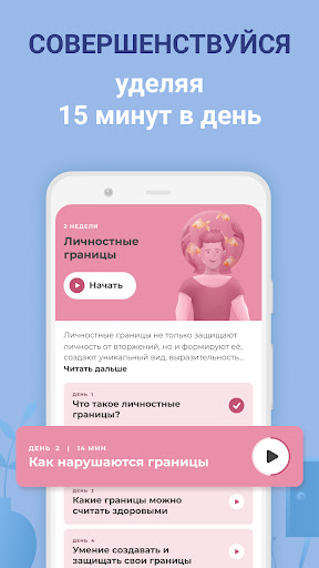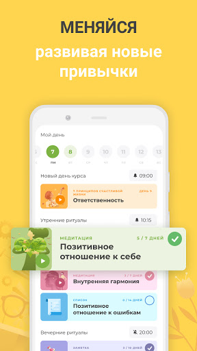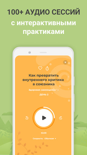 Слушай аудио-сессии, отвечай на интерактивные вопросы, погружайся в медитации, добавляй ритуалы в календарь привычек. Все, что тебе понадобится - 15 минут в день, которые ты можешь посвятить себе.