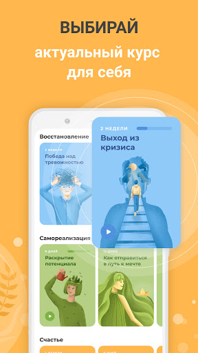 С помощью нашего приложения ты сможешь преодолеть стресс, избавиться от тревоги, повысить самооценку и мотивацию, найти выход из личностного кризиса, улучшить качество отношений и многое другое.