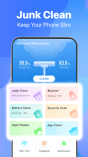 "1Tap Booster: Phone Cleaner" is a professional phone cleaner, cache cleaner, junk cleaner, phone booster, security, battery saver, CPU cooler, photo cleaner, manager media file manager, app uninstaller for android system, free up your storage space and improve the performance of your device.