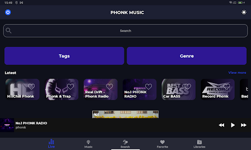 - Меняйте цветовую схему приложения Phonk Music радио по настроению.