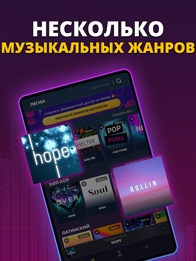 Исследуйте оригинальные песни Beat Lab и веселитесь, играя на drum pad.