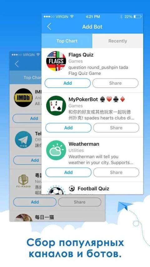 Боты, которые охватывают жизнь, развлечения и новости, такие как Weatherman, Poker Bot, футбол викторины, гороскоп .. сделать вашу жизнь в Telegram гораздо интереснее.