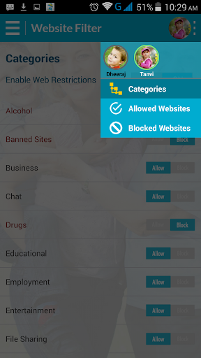 Управление веб-сайтами и блокировкой нежелательных URL, таких как блок порно веб-сайт, блокирует веб-сайты для взрослых, преступность, азартные игры и алкоголь.