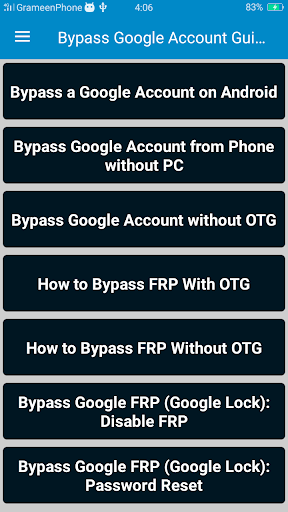 Обход Google Руководство по учетной записи и приложение трюков Это полное руководство.Обход учетной записи Google Руководство по этому приложению только направляет вас и простые трюки.