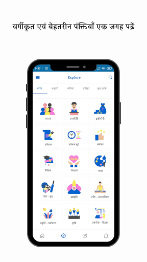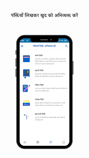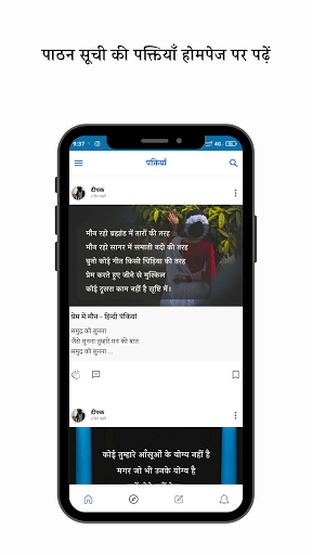 Важные функции также доступны в приложении, как ценить Hindi Panktiyaan / Content , комментировать, обмен, фильтрацию содержимого на основе их длины. Это дает вам возможность редактировать ваш профиль, контент, список чтения, когда вы хотите.