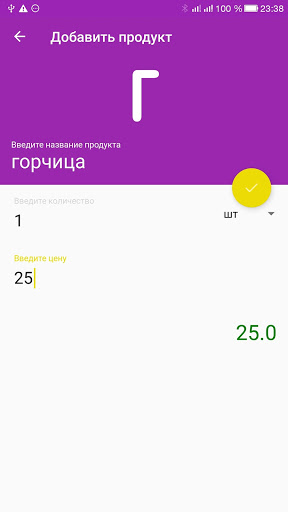 естественными жестами (смахиванием влево или вправо). Вы можете осуществлять ввод данных, как с помощью клавиатуры, так и голосовым вводом. Для ускорения ввода данных, все введенные названия товаров запоминаются в базе данных,