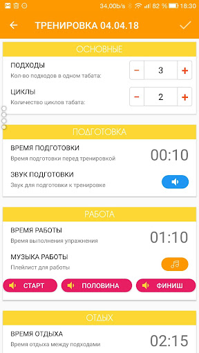 Еще одна новая функция это возможность выбора отдельно звука страта, середины и финиша периода (работа / отдых), что тоже должно способствовать повышению удобства использования Таймера интервальных тренировок PRO.