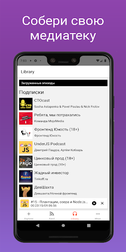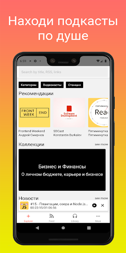В Podcastly вы обязательно найдете подкасты на все случаи жизни. Подписывайтесь на любимые подкасты, а наша система рекомендаций откроет для вас еще больше интересного контента. Приложение подскажет вам, когда вышел новый эпизод, а вы сможете решить, послушать его онлайн или отложить прослушивание на потом, загрузив его совершенно бесплатно.