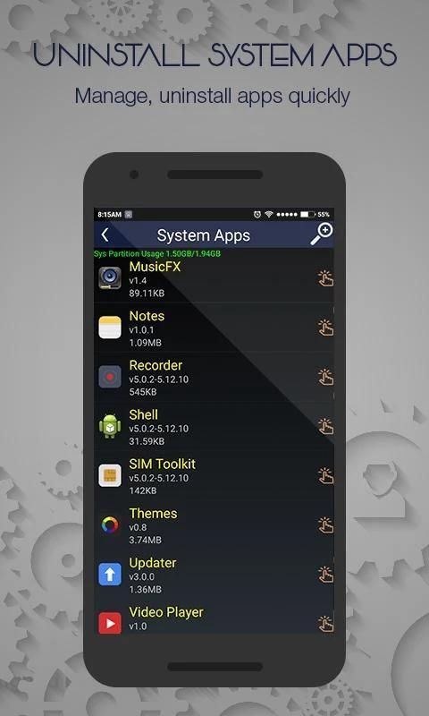 Вы раздражены с приложений по умолчанию производителем предустановки телефону в, покупательская способность памяти, редко используют ... и вы хотите, чтобы удалить их, но не знаю как. Довольно просто вы просто приложения приложения Uninstall Системные с корневой разрешения работать более эффективно, это поможет вам удалить приложения системы, удалить систему приложений и удалить прикладную систему необходимо.