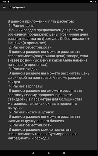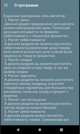 1. Расчет цены: данный раздел предназначен для расчета розничной(продажной) цены. Розничная цена рассчитывается по формуле :"Себестоимость" "Наценка"(в процентах).