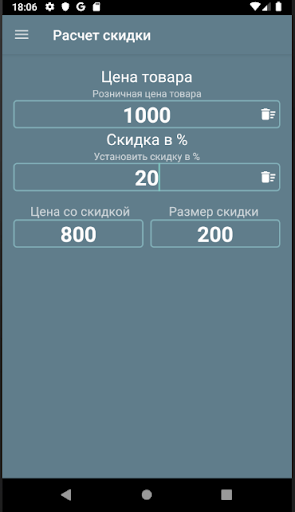 3. Расчет скидки:в данном разделе вы можете рассчитать цену со скидкой на ваш товар. А так же размер скидки.