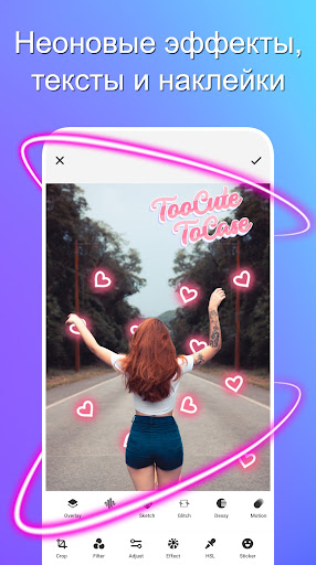 - Инструмент неона для создания веселых эффектов с неоновыми огнями, кругами, вспышками, линиями и многими другими эффектами неона, которые можно использовать, чтобы оживить ваши фотографии.