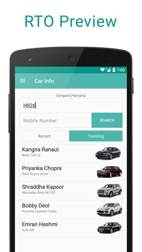 С помощью Car Info вы можете получить подробную информацию о большей части транспортного средства, зарегистрированного в соответствии с МРК Индии.