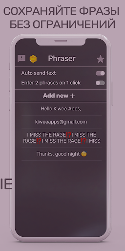 И теперь вы можете использовать Phrases Keyboard в любом приложении.