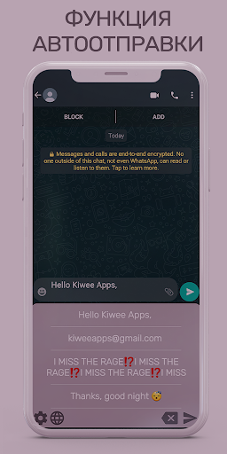 - Функция автоматической отправки сообщения (работает не во всех мессенджерах)