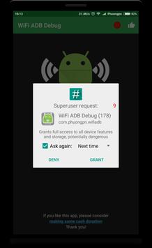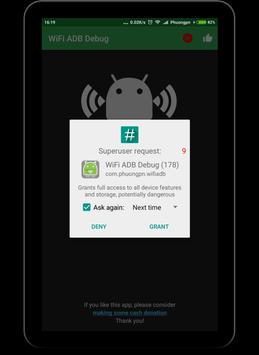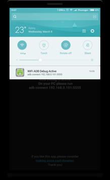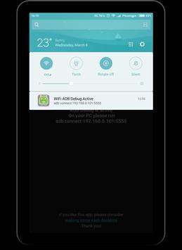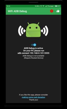 WiFi ADB Debug is a easy way to build, debug and test app with wifi connection, no cable. This is a helpfull for deverloper