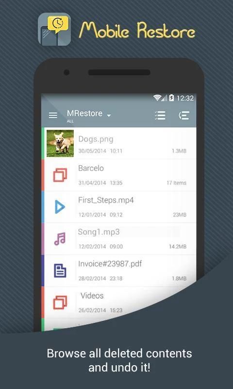 Dumpster Mobile Restore работы как корзины на рабочем столе компьютера. Было бы отличным инструментом, чтобы помочь вам восстановить удаленные фотографии и видео в простой и легкий способ. Приложение не только восстановить удаленные данные на Android, он также позволяет восстановить все общие файлы, такие как изображения, звуки, PDF, mp3, APK.