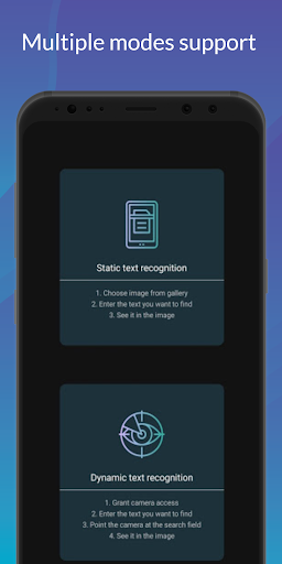 2) Dynamic text recognition - works directly with the image from the camera.